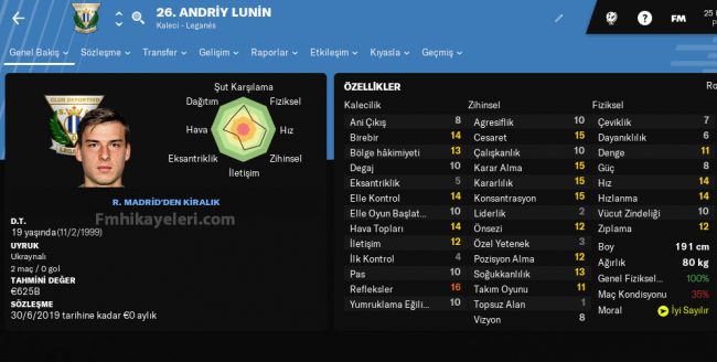 Ukraynalı genç file bekçisi genç kadro kurmayı sevenler için birebir bir kaleci.