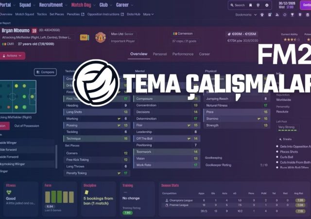 Football Manager 26 ile alakalı ilk tema çıktı. FM 26 için hazırlanan ilk temanın sahibi Football Manager serisi için düzenli olarak tema çıkartmasa da tema yapımcıları arasında olan Alex Morak. İşte FM 26 Tema (AlexMorak)’ın kurulum adımları ve detaylar. FM…