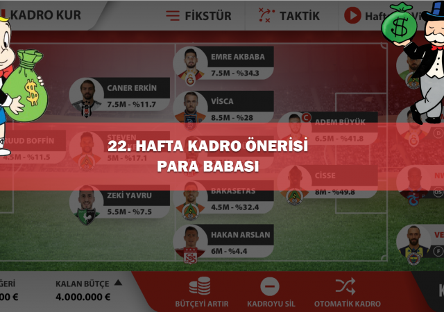 PO Sosyal Lig 22.Hafta Kadro Önerisi (Para Babası)