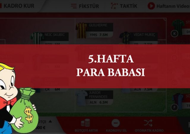 Geçen hafta kurduğumuz Para Babası kadrosu 93 puan alarak, paranın tek başına huzur getirmediğini bize göstermiş oldu 🙂 Bu hafta ise acaba daha fazla para ile bir takım kurarsak ne olur ona bakacağız. Kadronuzu kurmadan önce Süper Lig 5. Hafta…