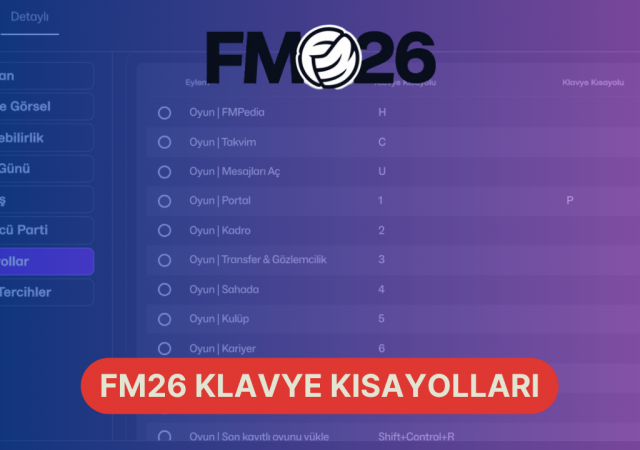 Football Manager 26’nın beta sürümünün çıkmasıyla birlikte uykusuz gecelere 23 Ekim itibariyle merhaba dedik. Yeni bir arayüzle karşımıza çıkan FM26’da alışık olduğumuz menülerin yerini bulmaya çalışırken yeni arayüzde kısayollar işimize yarayacak gözüküyor. İşte FM26’da kullanabileceğiniz klavye kısayolları. Eylem Klavye Kısayolu…