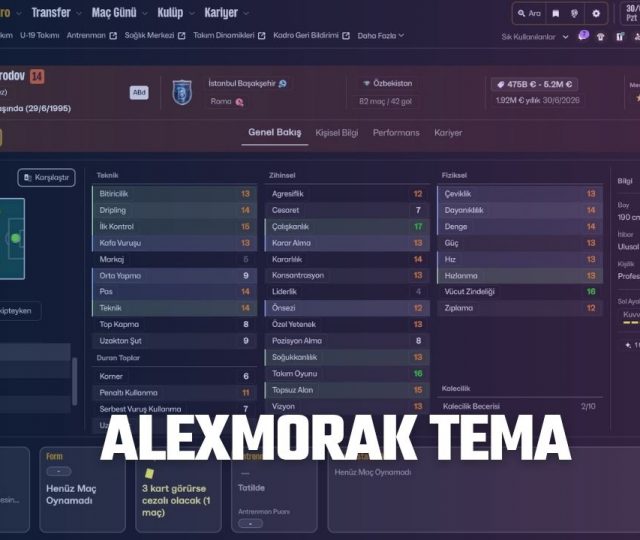 Football Manager 26 ile alakalı ilk tema çıktı. FM 26 için hazırlanan ilk temanın sahibi Football Manager serisi için düzenli olarak tema çıkartmasa da tema yapımcıları arasında olan Alex Morak. İşte FM 26 Tema (AlexMorak)’ın kurulum adımları ve detaylar. FM…