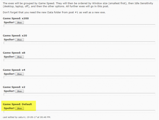 Gamespeed sayfasında Default seçeneği üzerinden ilerleyeceğiz. İsterseniz oyunu daha hızlı oynamak istiyorum diyenler farklı oyun hızlarındaki linkleri de deneyebilir.Gamespeed Default seçeneğidne Spoiler Show kısmına basıyoruz ve 3 NUMARALI linki indiriyoruz.