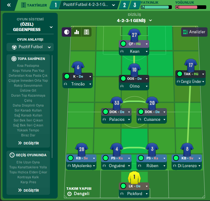 Taktiğin başında da yazdığım gibi bu taktiğin en önemli kısmı kanatlar. Ekran görüntüleri 2020-2021 sezonuna ait. Oyuncularla ilgili detayları Everton kariyerinde detaylandıracağım ancak ileri dörtlüm taktiğim ile mükemmel uyum gösterdiler.