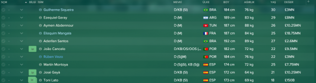 Sağ bek olarak Cancelo’yu sol bek olarak ta Gaya’yı kullanabilirsiniz. İkisinden de maksimum verim alıp büyük kulüplere satabilirsiniz. Alternatif olarak sağ bekte Montoya’yı sol bekte ise Siqueira’yı kullanabilirsiniz. Hatta sol bek için Toni Lato adında genç bir yetenekte bulunuyor. Bazı önemsiz maçlarda onu ilk 11’de oynatabilirsiniz. Stoper mevkiinde Garay ile Abdennour’u kullanabilirsiniz. Yedek olarak Mangala ve Aderilian Santos var.
