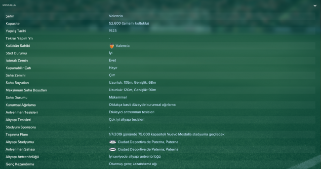 Valencia ile takım incelemelerimize devam ediyoruz. Football Manager’e göre Dünya’nın en itibarlı ligi olan Liga BBVA’nin köklü kulüplerinden olunca haliyle itibarınız da çok iyi oluyor. Kulübün tahmini değeriyle kredi borcu arasında büyük fark var. Zaten mali durumu da zenginler listesinde.