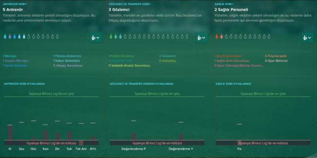 Teknik ekibi baştan aşağı değiştirmenizi öneririm. Yoksa bu teknik ekip ile başarılı olmanız mümkün görünmüyor. Hatta gözlemci ve sağlık personelimiz yok denecek kadar az.