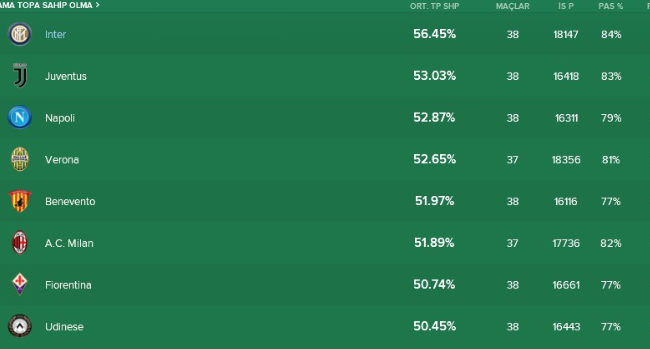 Ligin en çok topla oynayan ekibi de ben oldum. Zizu’nun taktik ile hem ligde hem de istatistiklerde şampiyon oldum. 🙂