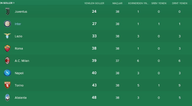 En Az Gol Yiyen Takımlar: