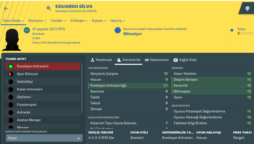 Bu versiyonda en göz alıcı Kondisyon Antrenörü olarak karşımızı Eduardo Silva çıkıyor.