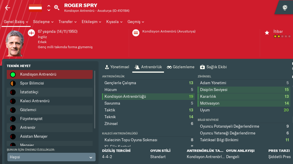 Oyun başında herhangi bir kulüp çalıştırmayan bir başka başarılı kondisyoner antrenörü de Avusturya’dan Roger Sprey.