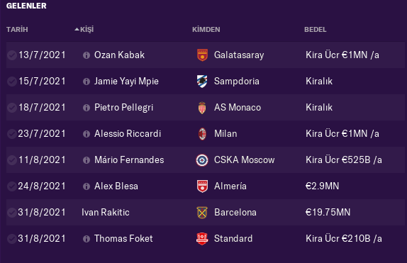 Sözleşmesi bitmesine bir sene kalan Ivan Rakitic’i orta sahaya kazandırmayı başarmıştım. Benim için oyunumun büyük bir parçası olmuştu. Kaleyi yedeklemek için ise Alex Blesa’yı ucuz bir rakam ile kapatmıştım. Diğer tüm transferlerimi kiralık, ileriye dönük satın alma opsiyonlu kiraladım. Milan’dan öğrencim Riccardi ile Galatasaray’ın parlayan yıldızı Ozan Kabak ilk 11’in önemli oyuncusu olmuşlardı.