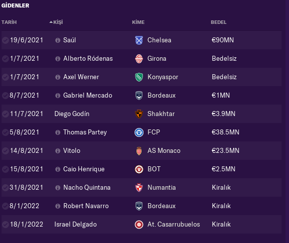 Saul dışında kendi isteğimle takımdan birkaç oyuncu ile yolları ayırdım. Efsane isim Godin’i 3.9 milyona avroya Shaktar’a yolladım. Taraftarlar ve yönetim tarafında pek hoş karşılanmayan bir hareketti ancak Godin’i oyun planlarımın içerisinde düşünmüyordum.