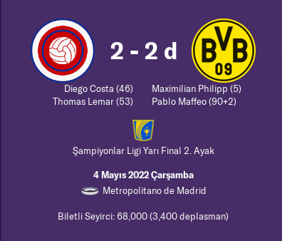 Rövanşta daha defansif bir oyun ile sahaya çıkmıştım. Güçlü kanat oyunlarını durdurabileceğimden emindim ve öylede olmuştu. Maçı 1-0 kaybettik ama gol fazlası ile eski takımımı elemenin mutluluğunu ve iki sene üst üste Şampiyonlar ligi Yarı finali görmenin heyecanını yaşıyordum. Rakip yine Almanya’dan geliyordu Dortmund!