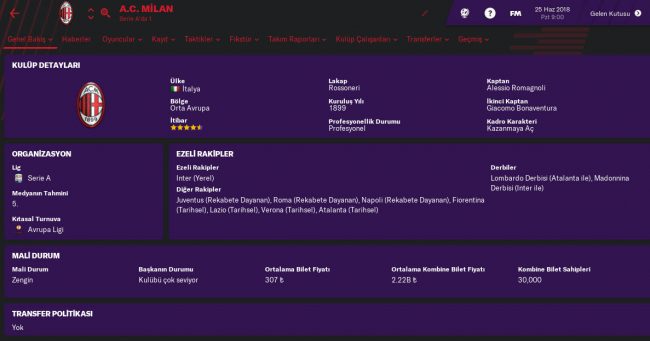 2017/2018 sezonuna başlarken Milan’ı satın alan Çinli yatırımcılar, efsane kulübe çok büyük paralar harcayarak iyi bir kadro kurdular. Son 6/7 senedir rekabetten bir hayli uzak, mütevazı kadrolarla mücadele etmeye çalışanı Milan’ı eski günlere döndürmek hazır mısın? Şampiyonluklar, Şampiyonlar Ligindeki başarılı günlere; Hakan, R.Rodriguez, Higuain, Donarumma, Suso gibi yıldızlarla ulaşabilirsin.
