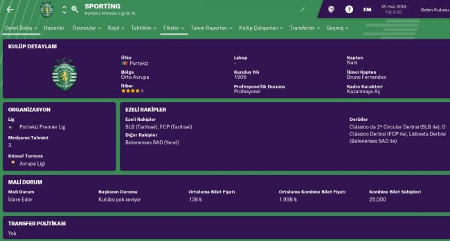 Son yıllarda Porto ve Benfica’nın arkasında kalmış, Portekiz’in ve dünyanın en önemli alt yapı kulüplerinden birisi olan Sporting Lizbon. Dünya futboluna Pepe, Ronaldo, Nani, Quaresma, Eric Dier gibi önemli isimleri kazandıran bu güzel kulüp en son 17 yıl önce şampiyon oldu. Son 17 yıldır ise Portekiz Lig’inde Benfica ve Porto’nunda arkasında figuran rolünde. Bu altyapıya çok özen veren kulübü tekrar Portekiz ve Avrupa’da başrole taşımaya ve hâlâ aynı düzeyde futbolcular yetiştirip, satmaya hazırsanız Sporting Lizbon tam size göre. Hem başarıya aç, hemde vizyonlu bir kulüp.