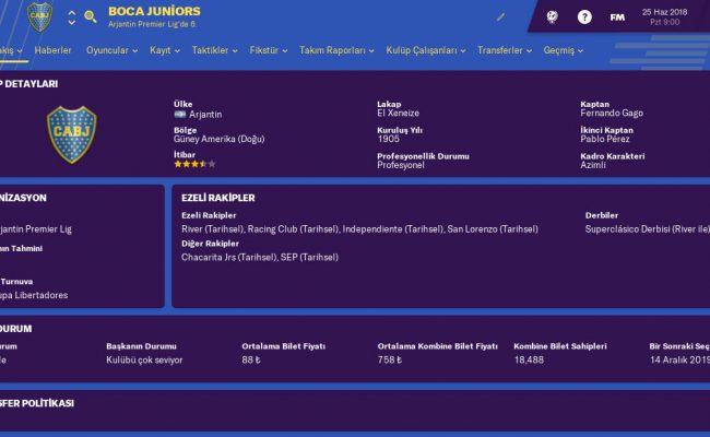 Boca Juniors, 1905’te 1 İrlandalı, 2 İtalyan ve 3 Arjantinli genç tarafından Buenos Aires’in La Boca semtinde kurulur. Bu 6 genç o zamanlar İngiliz demir yolları tarafından Arjantin’de inşa edilmekte olan istasyonda çalışan işçilerdir. Kuruluşu emekçi bir kesme hitap eden Boca, zamanla Arjantin’in en büyük takımlarından birisi olmuş hatta başarıya o kadar alışılmış ki çoğu zaman ikincilik onlar için sunulacak bir seçenek bile olmamıştır. Deniz aşırı bir ülkede tarihi olan ve başarıya her daim açık bir takım çalıştırmak isterseniz, ateşli taraftarları ile Boca sizi karşılayacaktır.