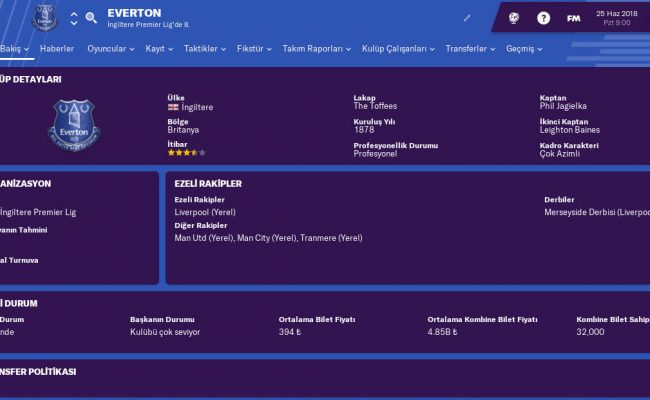 Liverpool’un mavileri. Premier Lig’de en çok zaman geçiren takım ünvanını halâ korumaktadırlar. Liverpool şehrinde Liverpool kulübünün gölgesinde kalır gibi gözükseler de Everton’ının da kendisine tutkuyla bağlı taraftarları vardır ve Goodison Park’ı her maç günü doldururlar. Everton’da bu yazıdaki diğer kulüpler gibi geçmişinde şampiyonluklar yaşasa da uzun süredir bırakın şampiyonluğu ilk 4 yüzü bile göremiyor. Everton 18/19 sezonuna girerken kadrosunda biraz da olsa değişime gitti ve ön tarafı resmen ateş eden futbolcularla doldurdu. Cenk, Richarlison, Bernard, Sigurdsson, Walcott; kalede yetenekli İngiliz Pickford, savunma hattında Zouma-Keane.. Baya baya iyi kadroları oldu. Bu iyi kadro ile ilk sezonlarda şampiyonluk kovalayamasan bile Avrupa gelebilir yada yerel kupalar. Sonrasını kim bilir, belki tüm büyüklere kafa tutarsın? Unutmadan, çokta iyi altyapıya sahiplerdir.