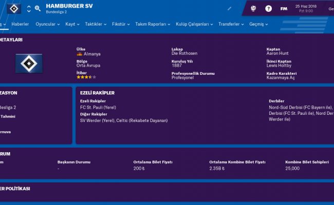 Bundesliga kurulduğundan beridir her sezon burada oynayan tek takım ünvanına sahip olan Hamburg, geçtiğimiz sezon küme düşüp, o ünvanı kaybetti. Son 5/6 yılı berbat bir şekilde küme düşme potasında geçiren taraftarı bir hayli ateşli olan Almanlar’ın bu güzide ve özel takımını tekrar Bundesliga’ya döndürüp, üst sıraları zorlarım dersen Hamburg tam sana göre.