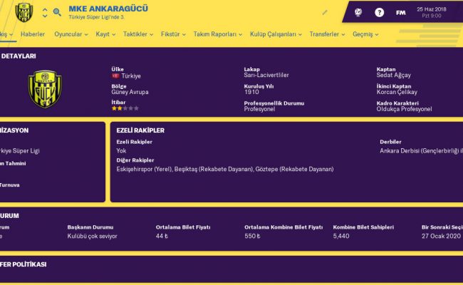 Türk futbolunun önemli takımlarından birisi olan başkent ekibi seneler önce dramatik bir şekilde lige veda etmişti. Sonrasında ise yeni bir yapılanmaya giren sarı-lacivertliler, üst üste iki lig birden atlayıp bu sezon yeniden Süper Lig’e yükseldiler. Taraftarı son derece ateşli olan bu takımı yeniden ligin istikrarlı ekiplerinden biri yapıp, yukarıları zorlayabilirim diyorsan; Ankara ayazında başarılar diliyoruz.