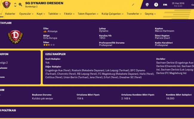 Dinamo Dresden, Almanya’nın Dresden kentinde 1950 yılında Doğu Almanya Polis Teşkilatı’nın takımı olarak kurulmuş futbol kulübüdür. Taraftarıyla çok fazla gündeme gelmektedir. Bundesliga 2’nin Dortmund’u desek bu konuda yeridir. Çünkü hem renkleri hemde tutkuları aynı. Taraftarları her maç muazzam atmosferler oluşturuyorlar. Fakat Dresden ekibi 95 yılından beridir Bundesliga’ya yükselme başarısı gösteremedi. O tarihten beri sürekli alt liglerde dolaşan bu tutkulu taraftara sahip ekibi tekrar üst lige çıkarıp arkana yeni bir sarı duvar almak istersen Dresden tam sana göre.