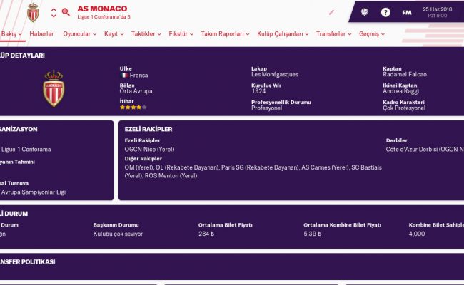 Sıfır taraftar baskısı, dolu bir kasa, tamamen futbolcu yetiştir/sat felsefesi ve yukarıları oynayan bir kadro.. Her şey çok güzel gözüküyor. FM’de Monaco’yu alıp yıllarca futbolcu keşfet/sat, şampiyonluk kovala, Avrupa’da başarı kovalayabilirsiniz. Bunları pek de zorlanmadan yaparsınız çünkü her şey lehinize işleyecek. Eğer eksik bölgeniz varsa ya altyapıdan takviye yaparsınız yada direkt transfer yaparsınız. Monaco FM’de çalıştırılıp en çok zevk alınacak takımlardan biri.