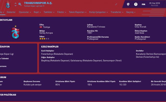 Kaos, şampiyonluk hedefi, zorlu mali tablo, şehrin büyük baskısı.. Bunlarla başa çıkıp Kuzey’de efsane olmak istersen Trabzonspor’u alabilirsin. Kadrosunda Abdülkadir, Yusuf, Burak, Sosa gibi yıldızları barındırmasına rağmen bir türlü başarıyı sağlayamayan Karadeniz’in hırçın takımının hasret kaldığı o güzel günlere yeniden kavuşturup efsane olmak, yada aksi bir sonuçta inanılmaz baskılara maruz kalmak. Eğer bu ince çizgide giderim, başarılı olurum diyorsan seni Karadeniz’in dalgalı ve hırçın kulübüne alalım.