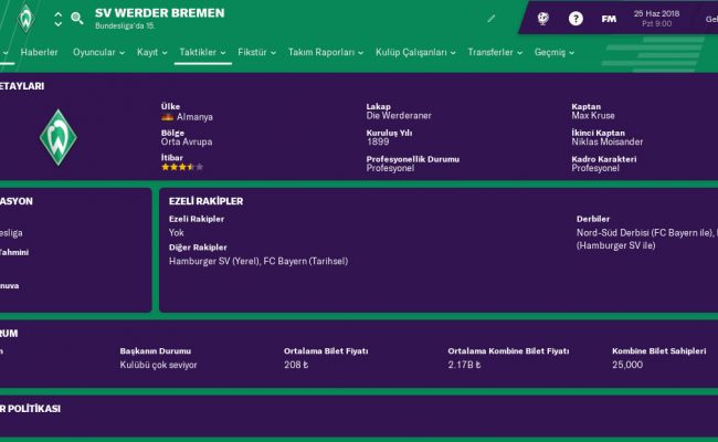 Benim belki tüm 22/25 yaşı arasında olanların çocukluğunun kulübüdür. Çünkü en son başarılarını 2004/2009 aralarında yakalamış, o tarihten bu yana kulüp Bundesliga’da hep orta sıralarda mücadele etmiştir. Güzel bir yapıya sahip olan fakat yıllardır Avrupa’ya dahi hasret olan yeşil-beyazlı bu çocukluğumuzda bize futbolu sevdiren kulübe yeniden başarı getirebilmek biraz zor ama bir hayli de zevkli olur.