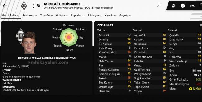 Bu çocuğu almak için büyük bütçelere sahip olmak gerekir fakat ya ben bu oyuncuyu kiralamıştım diyebilirsiniz , her gün her hafta artan özellikleri sizi bir anda 60-70 milyon£ lık bir oyuncuya sahip olmanızı sağlayabilir. ilk sezonda sadece maaşını ödeyerek kiralayabilirsiniz.