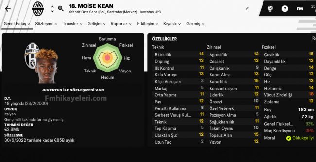 Kean FM 17 den beri FM nin değişmezlerinden üst üste 2 sezon dahi kiralayabileceğiniz oyuncunun en etkili olduğu yer sol iç forvet ,kanat forvet. Santrafor olarakta görev alabilen oyuncu güçlü fiziği ve hızıyla sizi uçuracaktır.