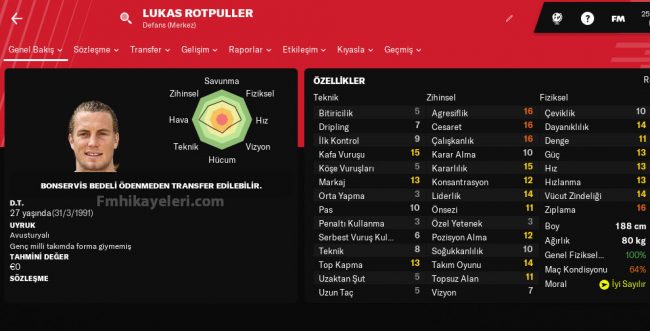 27 yaşındaki Avusturyalı oyuncuyu takımınıza bedelsiz olarak katabilirsiniz.