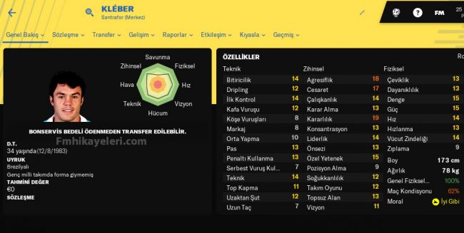 34 yaşındaki Brezilyalı oyuncuyu takımınıza bedelsiz olarak katabilirsiniz.