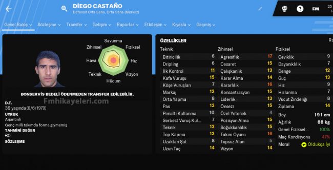 39 yaşındaki Arjantinli oyuncuyu takımınıza bedelsiz olarak katabilirsiniz.
