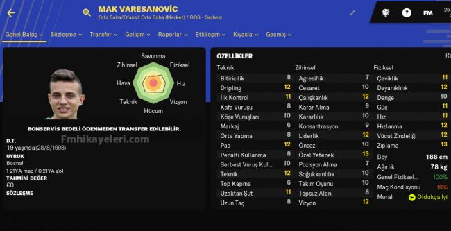 19 yaşındaki Bosnalı oyuncuyu takımınıza bedelsiz olarak katabilirsiniz.
