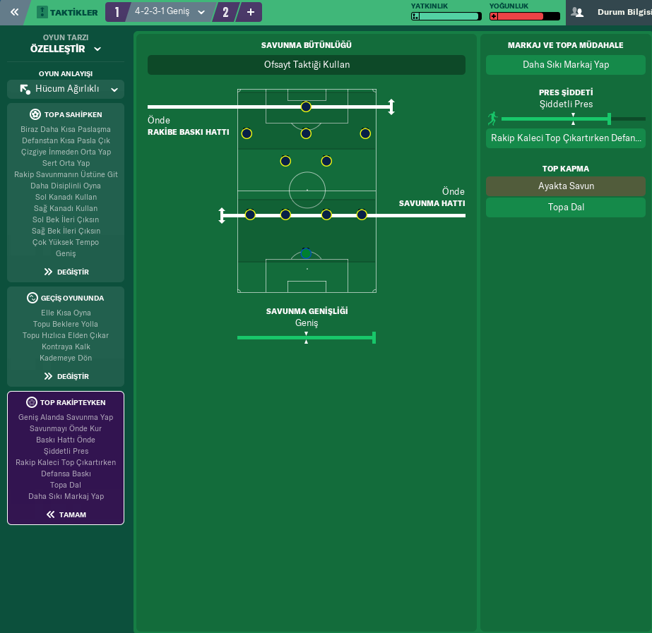 Taktikle ilgili belirtmem şey sezon öncesi dönemde çok çalışılması gerekildiği. Olumsuz sonuçlar almaya başlarsanız pes etmeyip takımın taktiğe daha çok alışmasını beklemelisiniz. En çok önem verdiğim noktam savunma hattı oldu çünkü gol yemediğiniz ve topa sahip olduğunuz her saniye galibiyet şansınız rakibinizden daha yüksektir 🙂