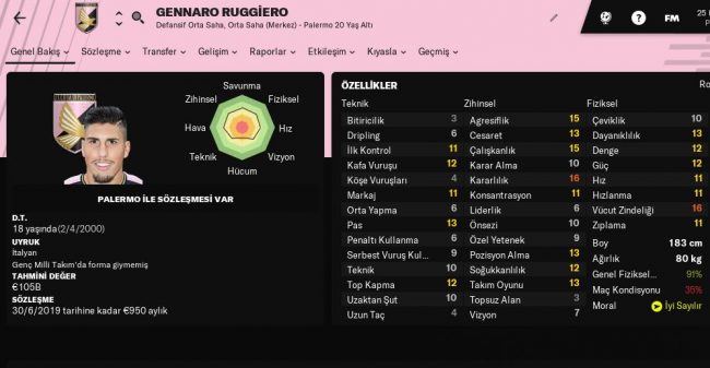 18 yaşında, Palermo’da forma giyiyor. Tam bir takım oyuncusu görüntüsü veren, defansif orta saha. Gösterişssiz, Busques gibi ama takıma çok katkı sağlayabilecek bir isim. Çalışkanlık, takım oyunu, kararlıklık gibi özellikleri çok iyi. Bu da takım oyununa uyumunu ve kendini futbola vermesini sağlıyor. Genel anlamda defansif orta saha olarak takımın hamallığını yapabilir. Kararlığı da yüksek, antrenmanlarda iyi gelişim gösterir ve ilerde ismini duyabiliriz. Maliyeti, 0.5 M €