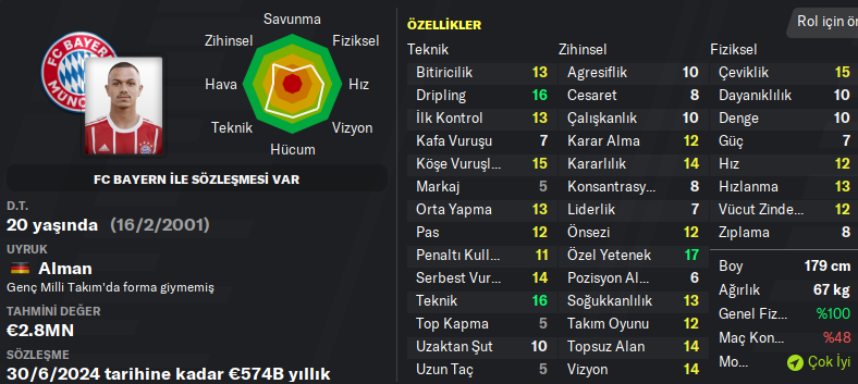 Tam bir kanat oyuncusu! 2016 senesinde Bayern Münich’e transfer olan genç Oliver, her iki kanatta da görev alabiliyor. 4-4-2 ve 4-2-3-1 taktiklerinizin vazgeçilmez oyuncusu olmaya aday. Tabii Oliver’i Bayern’in elinden almak pek kolay olmayacaktır. Antremanlarda bitiricilik çalıştırmanız şiddetle tavsiye edilir.
