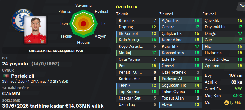 Listemizin sonuna dört dörtlük bir stoper ekliyoruz. Ruben Dias Benfica’nın dünya futboluna kazandırdığı önemli oyunculardan biri. Tam anlamıyla bir defans oyuncusu olan Dias, zihinsel özellikleri ile dikkatleri üzerine çekiyor. Özellikle tecrübeli bir stoperiniz varsa, Dias ile beraber bir tandem oluşturmak size sağlam bir defans ikilisi yaratacaktır.