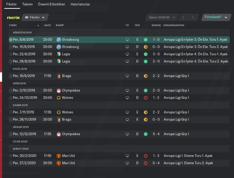 Avrupa Ligindeki grubum tam dişime göreydi aslında ve bu gruptan 9 puanla ikinci olarak çıktım. Çok da önem vermediğim Avrupa Liginin 2. turunda ise rakip ManU olunca hiç önem vermemeye başladım ve zaten iki maç sonunda 7 gol yiyerek ManU’ya elendim ve bu maceramız Şubat ayında sona ermiş oldu.