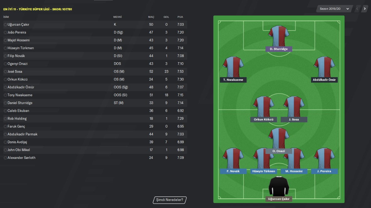 Trabzonspor’a bu taktik uydu aslında çünkü bahsettiğim gibi Trabzonspor’un oldukça iyi bir orta sahası (Sosa) ve çok iyi ofansif bekler (Novak ve Pereria) var. Bu üç adam bile takıma 45 gole yakın katkı sağladı. Gerçekten bunu birazdan istatistiklerde göreceksiniz.