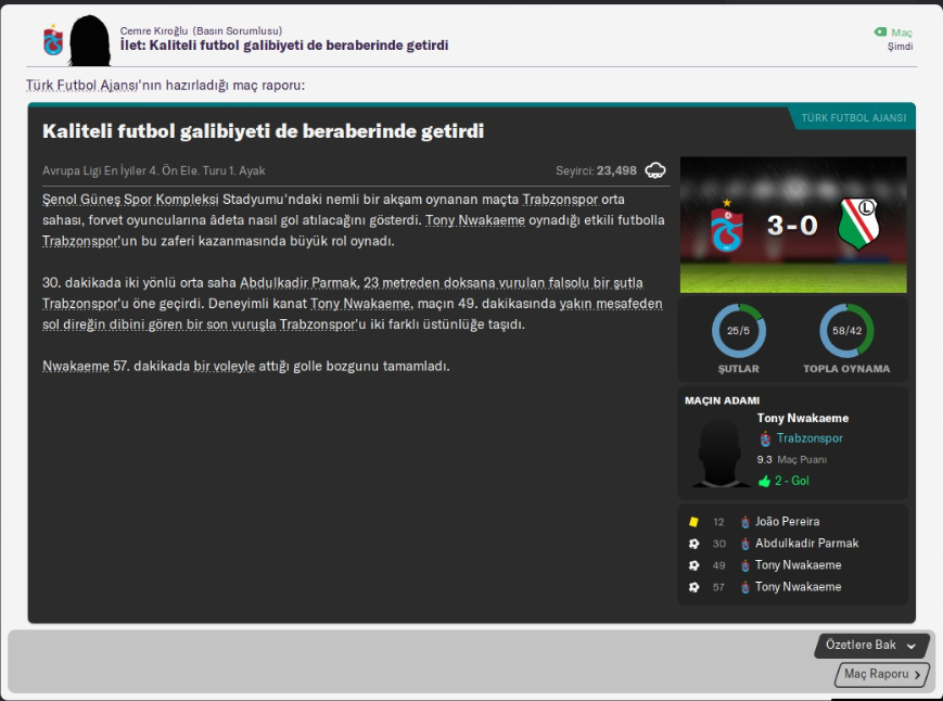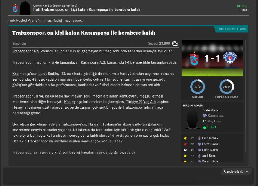 Ama gel gelelim bu futbolla yatan kalkan insanların yüzü son zamanlarda pek gülmüyor. En son kupasını 2010 yılında kaldıran Bordo-Mavililier, geçtiğimiz yakın tarihte ise istikrarsız bir şekilde ligde zirveden uzak kalmış durumda. Aslında FM oyuncuları için bu takım biçilmiş bir kaftan. Çünkü biz FM oyuncuları, genelde geçmişi başarılarla dolu olan ama son zamanlarda başarıdan uzak kalan takımları alıp yeniden o takımı geçmişteki başarılarına taşımayı çok severler. O yüzden FM’de Trabzonspor’u çalıştırmak keyifli olabilir.
