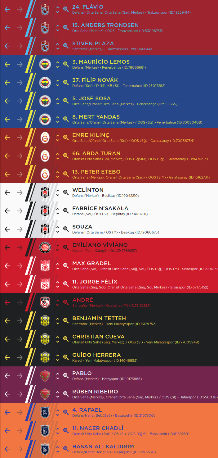 - Bu sene oyuna dahil edilmiş olan U18, U19 ve B takımı kadroları,