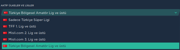 Resimde de görmüş olduğunuz gibi bölgesel amatör ligleri de dahil olmak üzere tüm ligler güncel ve oynanabilir durumda.