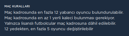 Ülkemizde değişen yabancı kuralı bu yamayla birlikte oyuna da ekleniyor ve oyun daha gerçekçi bir hal alıyor. Yukarıda ki resimlerde gördüğünüz kurallar sırasıyla 1. sezon, 2. sezon ve 3. sezon ve 4.sezona ait.