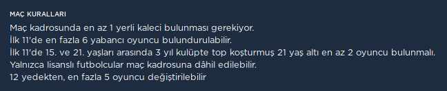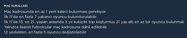 Güncel sistem ve kurallar oyuna dahil oldu. Bu süreci her sene farklı kurallarla görebilirsiniz.