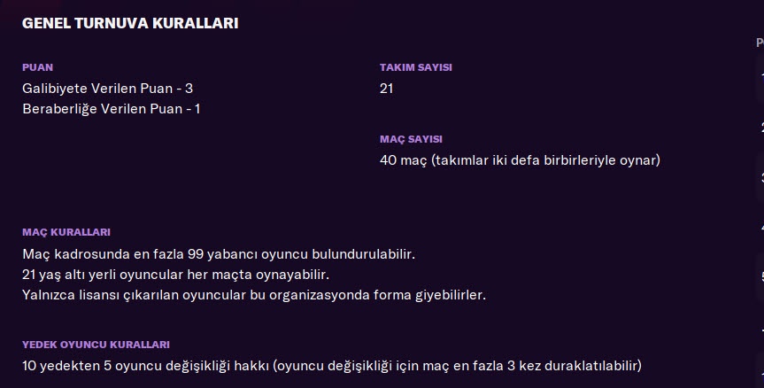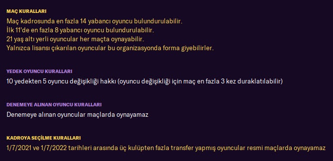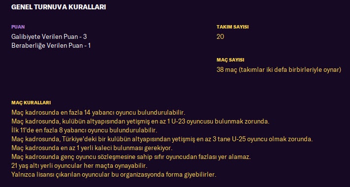 Football Manager 2021’de Süper Lig’de gelecek sezon kuralları şu şekilde;