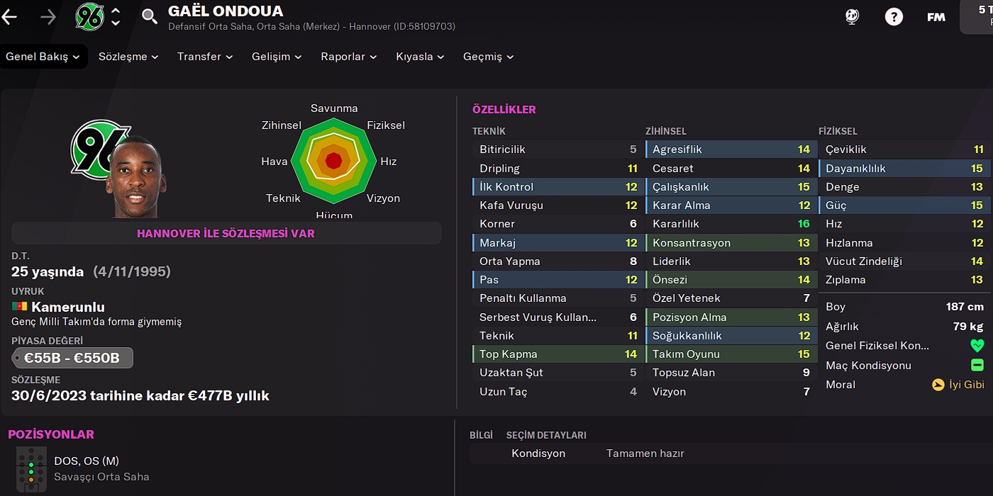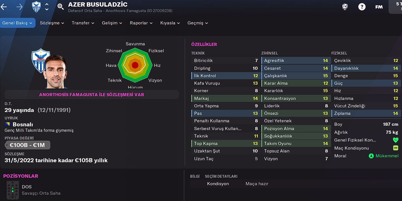 Takımın ihtiyaç duyduğu dinamiklik ve savunma katkısını sağlayabilecek bir ön libero.