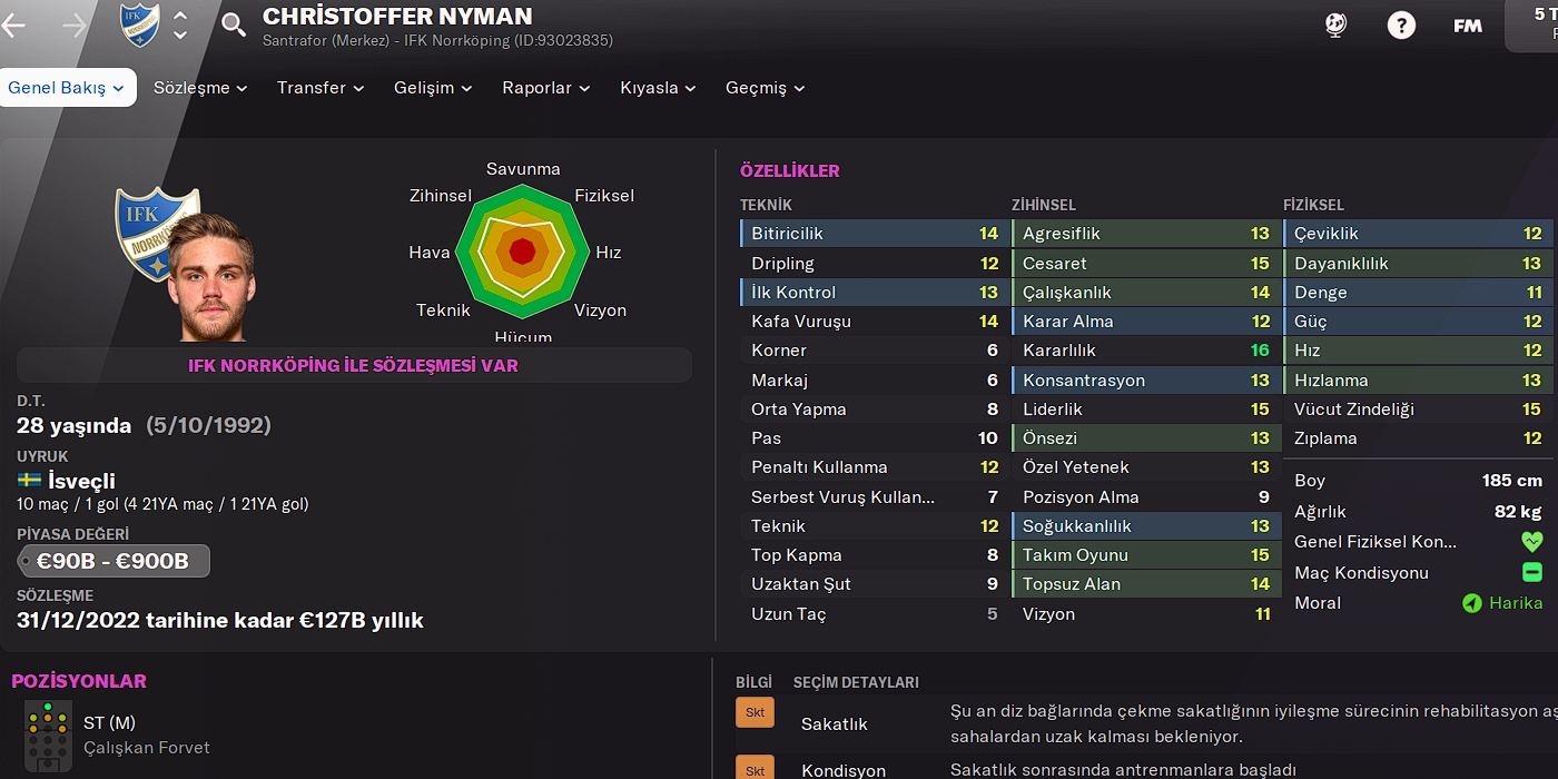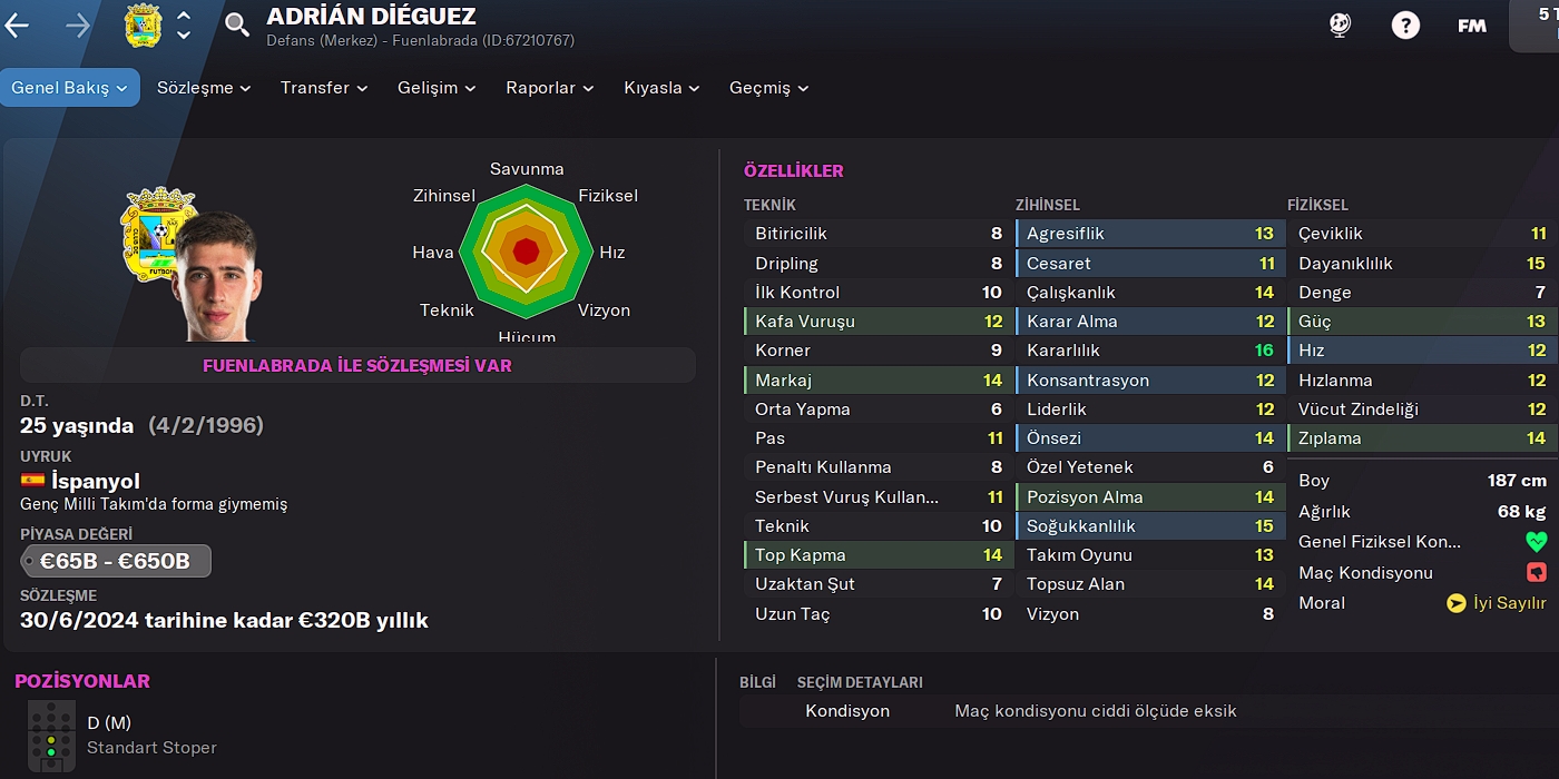 300.000€ – 900.000€ arası bonservis bedeli ile transfer edilebilir / İsteğe göre sezon sonu sözleşme bitiminde transfer edilebilir.