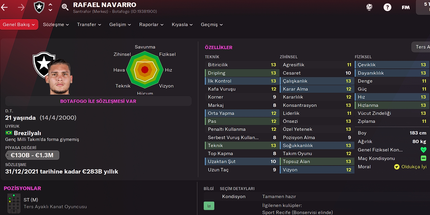 300.000€ – 1.100.000€ arası bonservis bedeli ile transfer edilebilir / İsteğe göre sezon sonu sözleşme bitiminde transfer edilebilir.