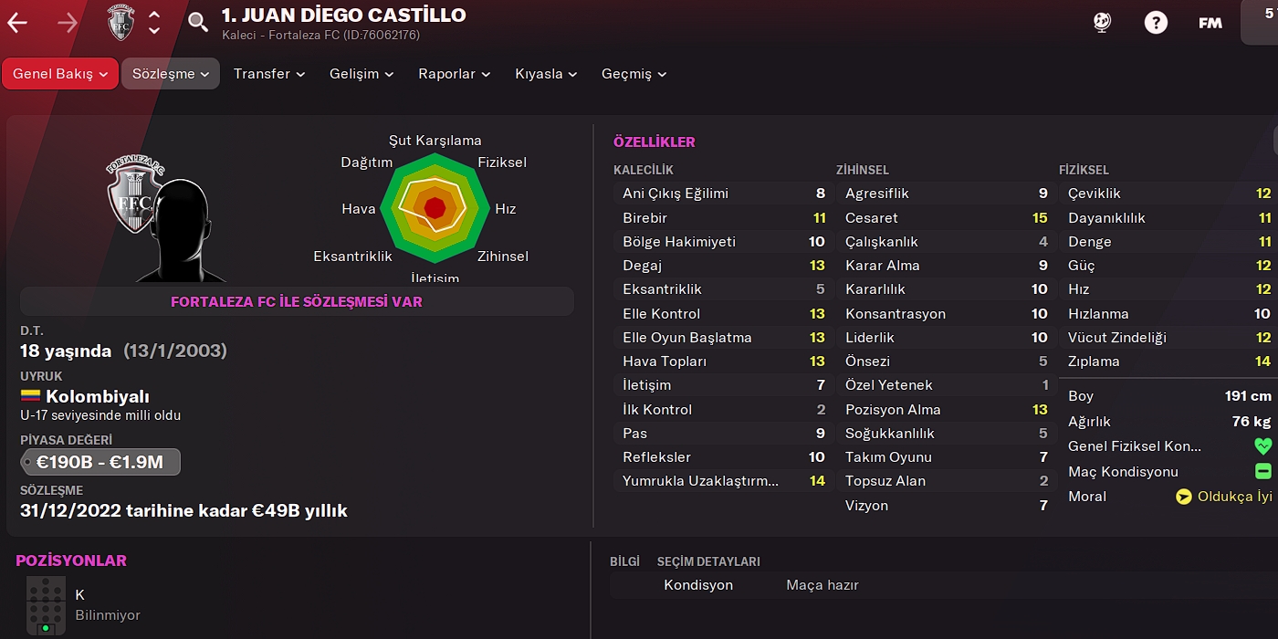FM’e eklenen her oyuncunun aynı zamanda mevcut yeteneği ve potansiyel yeteneği de eklenir. Bu değerler ilan edilen değerler değildir. Sigames bu değerleri özellikle saklıyor. Potansiyel yeteneği wonderkid seviyesinde olan oyuncular uygun çalışma şartlarında 21 yaşına girdiğinde wonderkid olur. Dolayısıyla, PA puanı wonderkid seviyesinde olmayan bir oyuncu tabir caizse ağzında kuş da tutsa wonderkid olamaz. Ama benzer şekilde, PA puanı wonderkid olmaya yeten biri iyi şartlar altında çalıştırılmazsa o da wonderkid olamaz.İşte FM 2022’de Süper lige transfer edebileceğiniz en iyi wonderkidler.